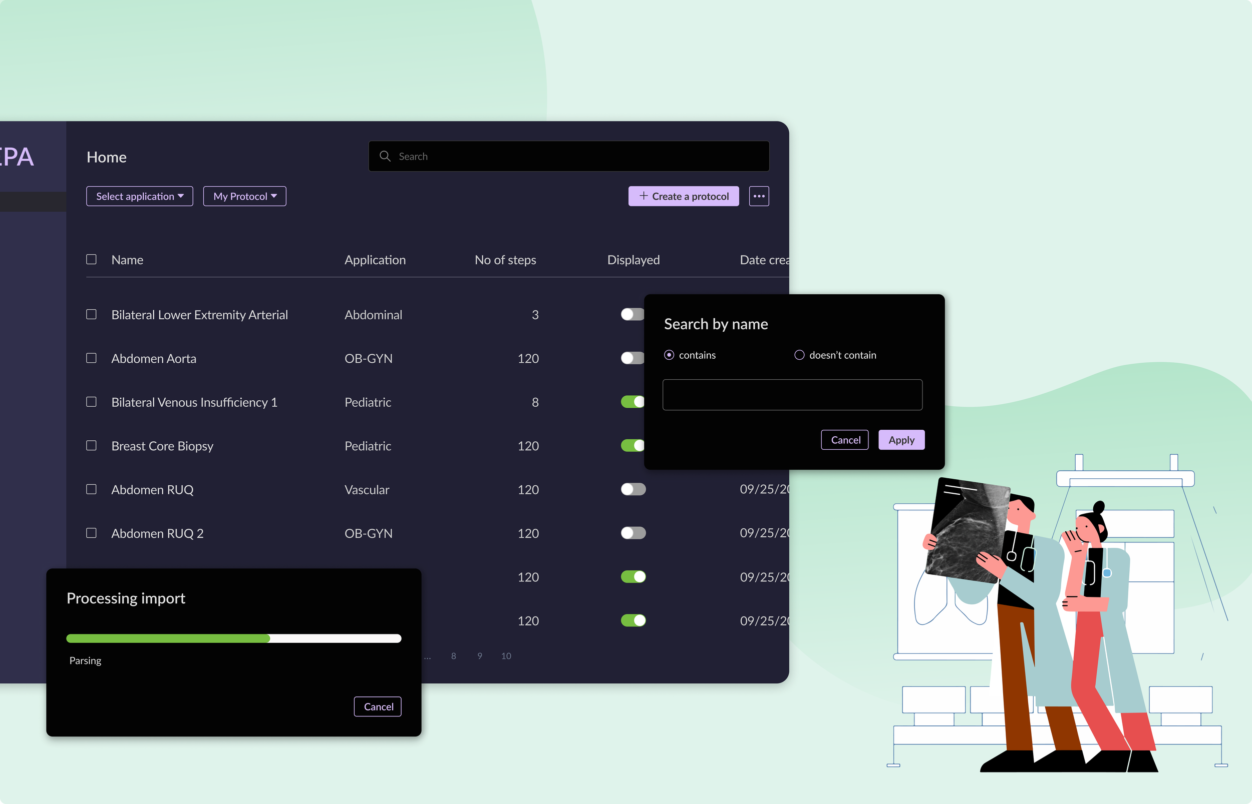 Design a clinical application to enhance efficient protocol workflow for medical radiologists during exams.