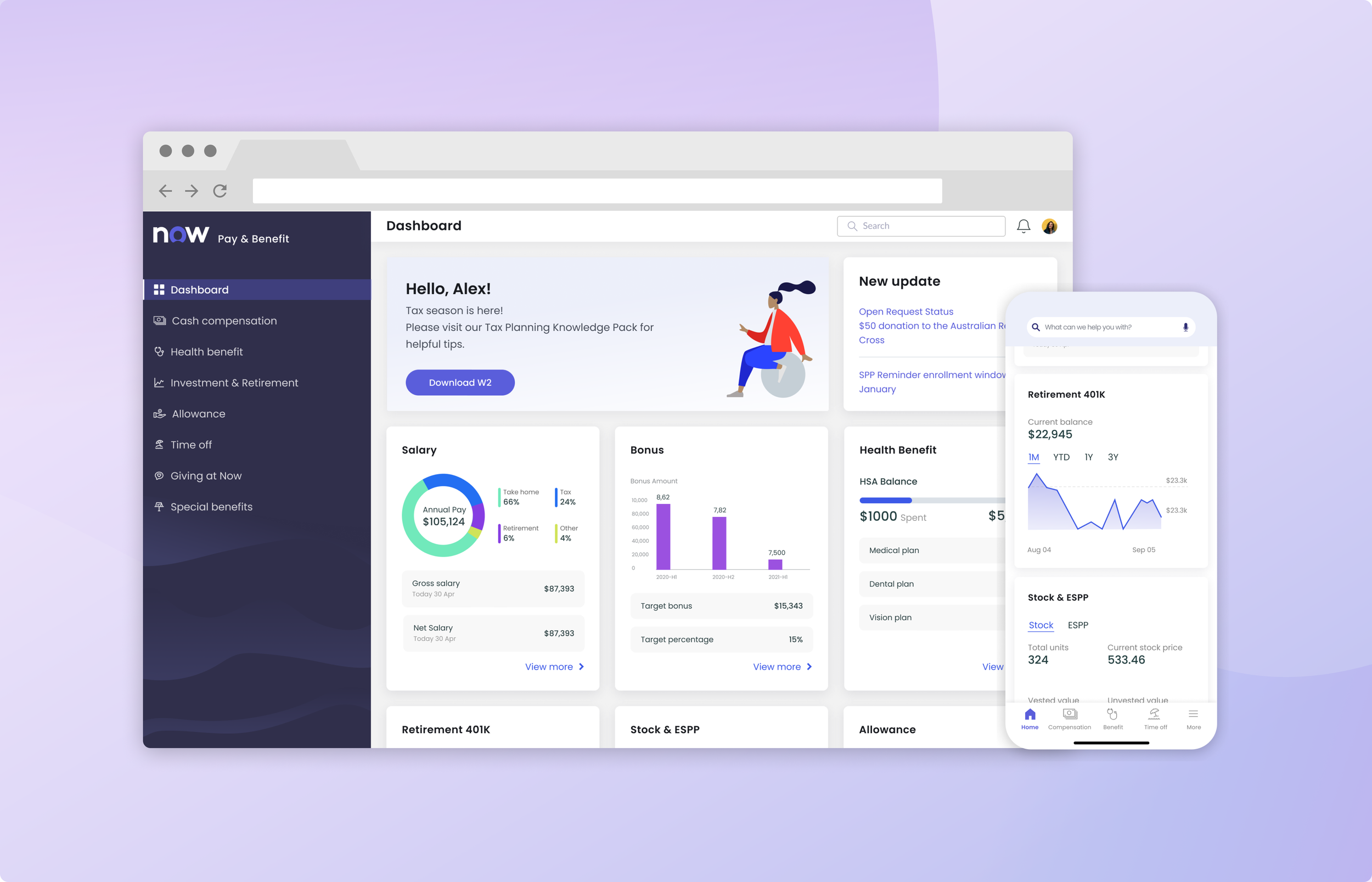 Design pay and benefit dashboard