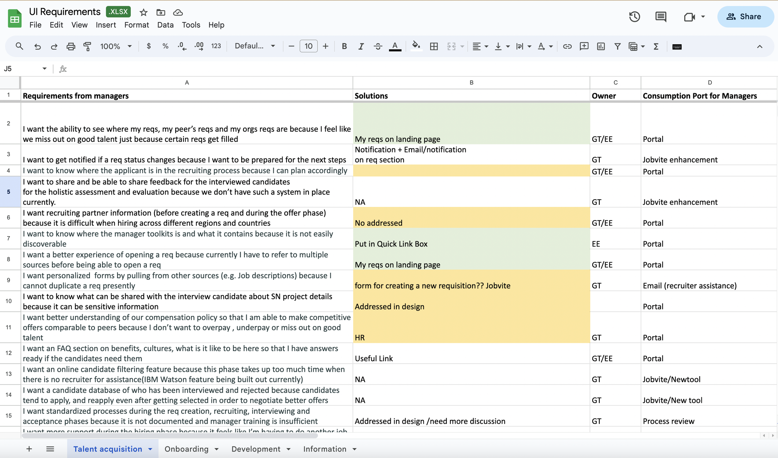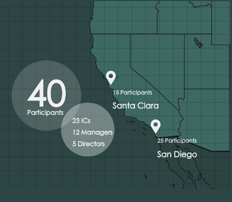 Focus groups in Santa Clara and San Diego with the intention of identifying and documenting pain points and highlights from both the IC and well as the manager perspective.