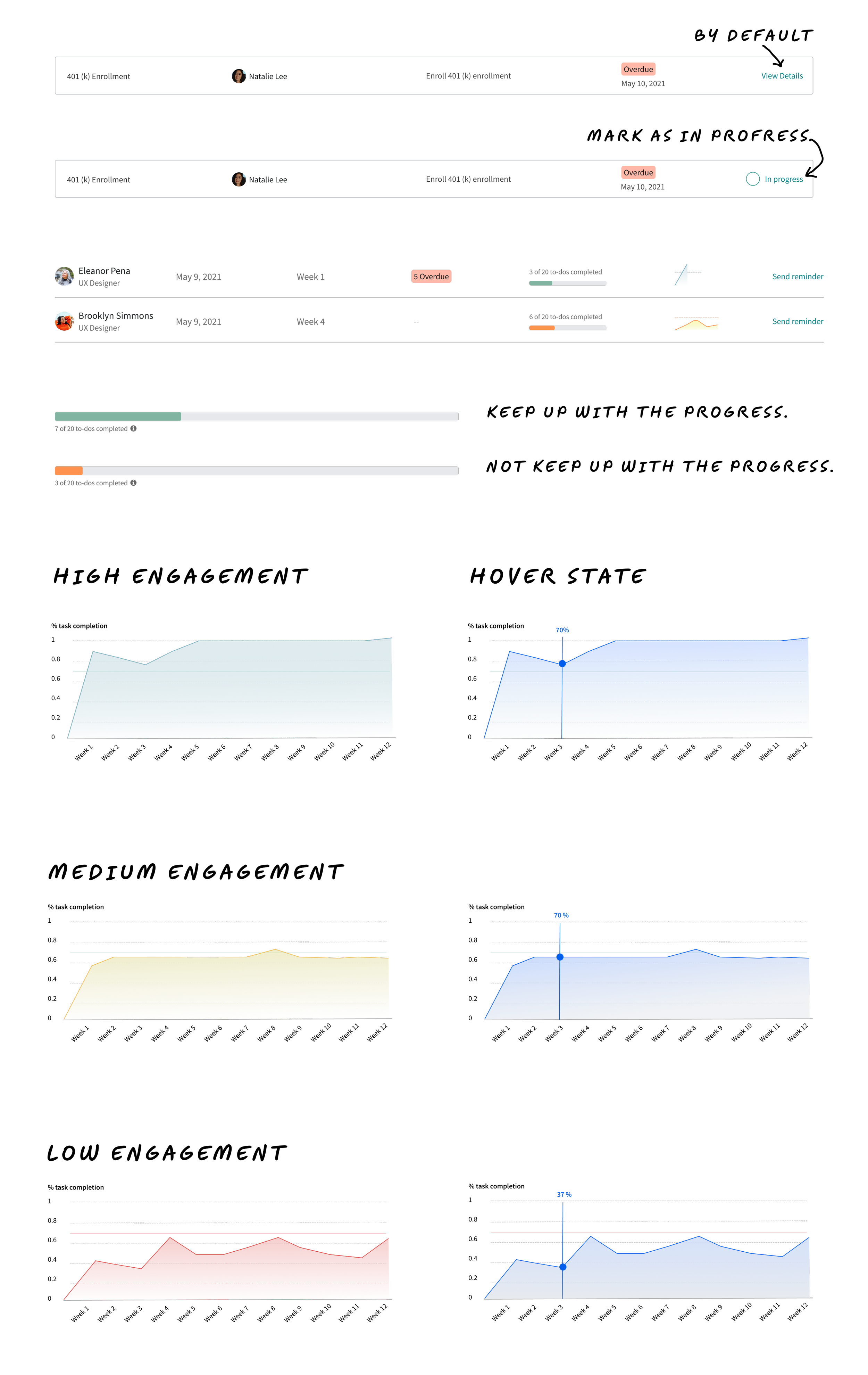This portal assists managers in tracking the activities and progress of onboarding and ramp-up for their new hires. If there are pending tasks, managers can use this portal to send emails to the new hires.