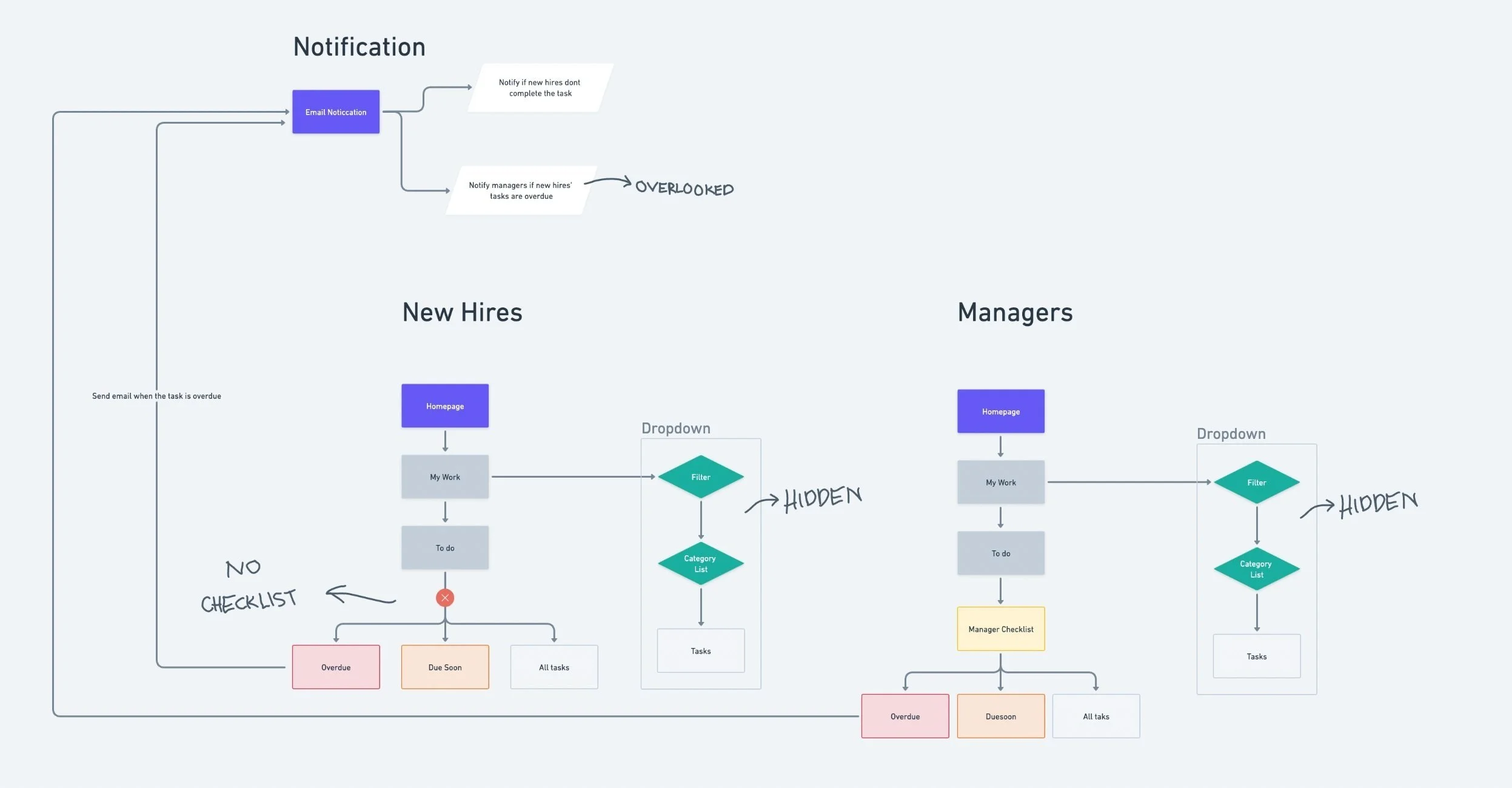 Despite the presence of an Employee Portal page dedicated to displaying all assigned tasks for new hires, each employee consistently overlooked certain tasks. This resulted in decreased efficiency and heightened costs for the company. Collaborating with the team, I embarked on an investigation to determine the underlying reasons before proceeding to the design phase.